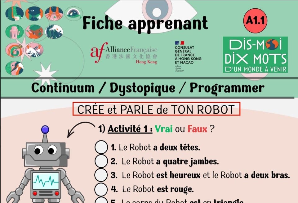 Vous trouverez ICI quelques activités pour les enfants niveaux A1.1 et A1.2 préparées par les participants : Alexis Ducret, Eva Zhou, Coralie Amilard, Habiba Benahmed, Karine Zanini et Benoit Manas.
